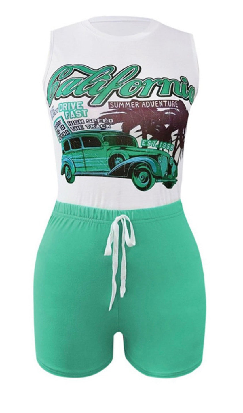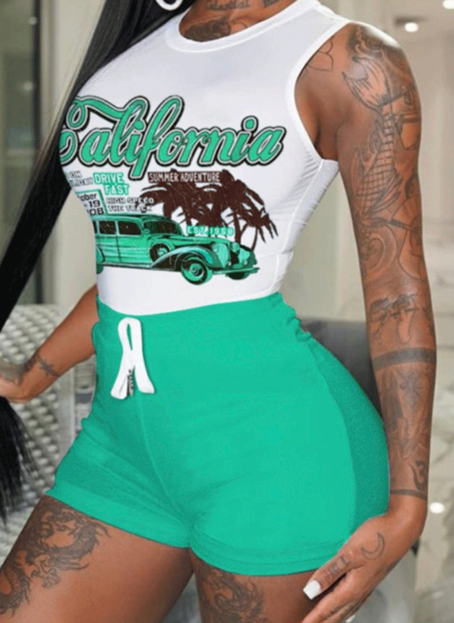 plus size, figure letter print, drawstring, polyester, sleeveless, round neck