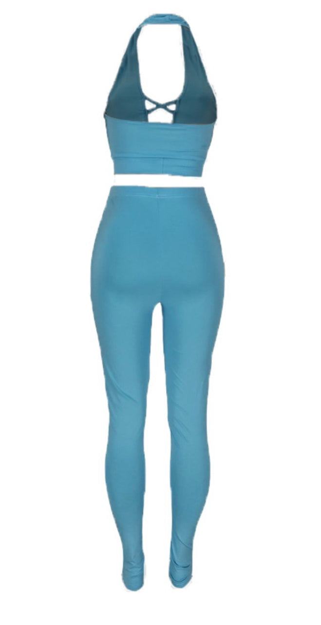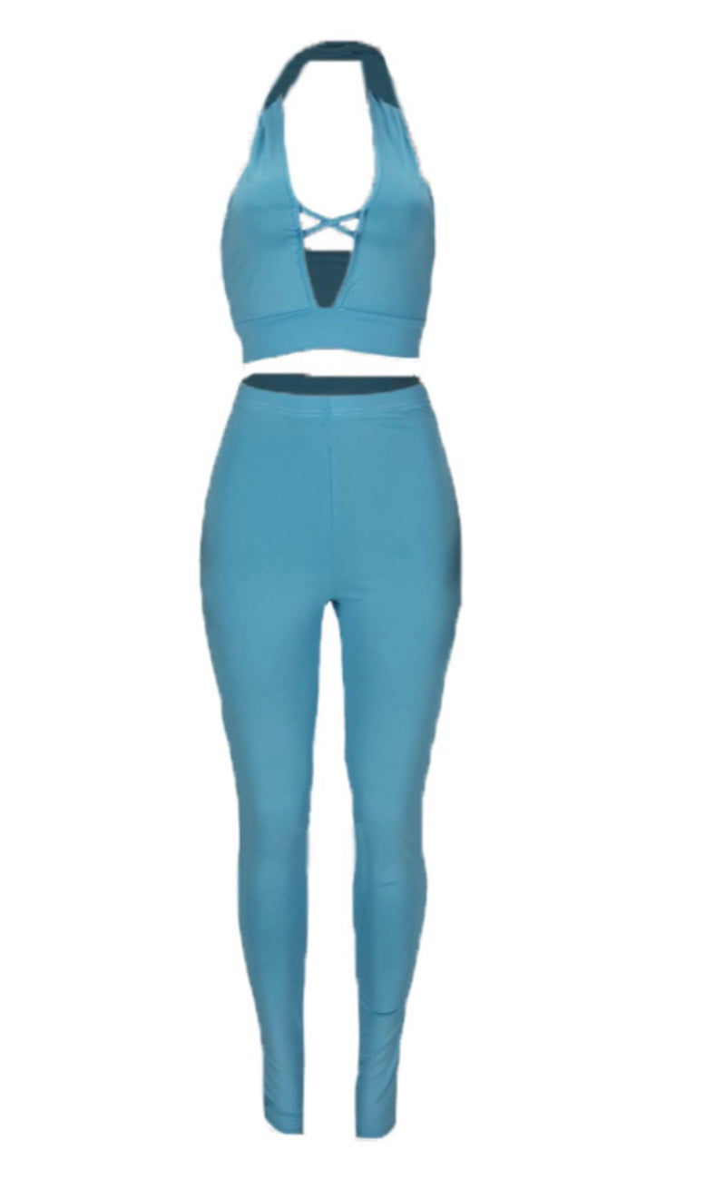 Crop Top, U Neck, 2pc pant set, polyester, sleeveless